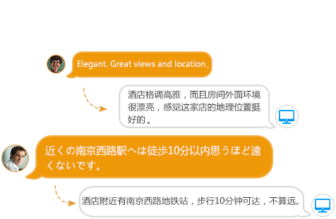 将英语等其他语种点评转化成汉语点评,可方便出境游的中国用户在预订外国酒店时不受外语能力的困扰做出合理判断;同样,将汉语点评转化成英语等其他语种,也可以帮助入境游的外国用户在预订中国酒店时更好地做出合理决策。