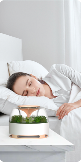 床边放置负氧离子康养机,生态级负氧离子弥漫性释放,提供延缓衰老的“空气维生素”